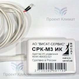 По периодическому снижению температуры термосенсора на 5 градусов, СРК-М3 судит об исправной работе кондиционера, когда последний включен. Если кондиционер включен, а температура длительное время (более 15 мин) не снижается, принимается решение о неисправности кондиционера. Адаптер СРК-М3-ИК в комплект поставки согласователя СРК-М3 не входит и приобретается отдельно для каждого канала ИК управления.