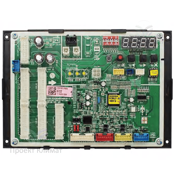 Плата управления LG EBR76336722 - это сложный электронный модуль, разработанный для обеспечения оптимального контроля и координации работы систем мультизонального кондиционирования воздуха (VRF) производства LG. Выполняя функции центрального процессора, эта плата получает, обрабатывает и распределяет информацию от различных датчиков и устройств, встроенных в систему кондиционирования.