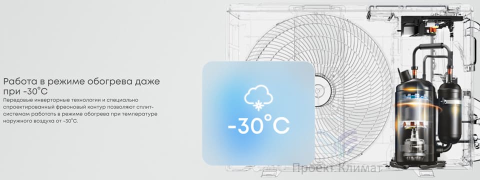 Для работы в столь суровых условиях инженера заводов-изготовителей предусматривают особые двухступенчатые компрессора, определённым образом настраивают работу расширительных вентилей. Всё это позволяет сохранять высокую эффективность обогрева даже при сильных морозах.