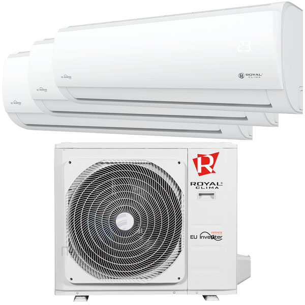 Подготовили для вас комплект мульти сплит системы на 3 комнаты, каждая из которых по площади до 25 м². 3RMN-21HN/OUT + RCI-TMN09HN x3 - это Royal Clima, сердце которого - японский компрессор Toshiba (GMCC) на новейшем фреоне R32, который будет работать (при должном уровне установки) и 10, и 15 лет кряду.