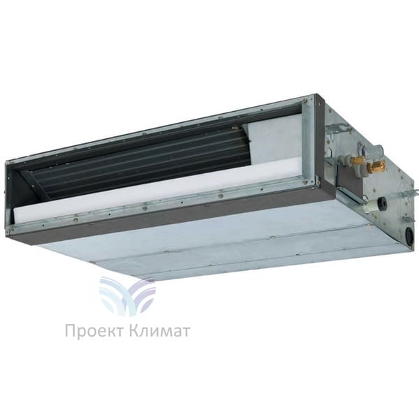 Элемент системы кондиционирования мультизональной системы. Канальное исполнение блока: гарантирует скрытую установку за потолочным пространством, забор и раздачу воздуха через решётки. MMD-AP0124SPH1-E имеет небольшие габариты (особенно по высоте) и обеспечивает достаточное статическое давление для подачи воздуха на дальние расстояния.