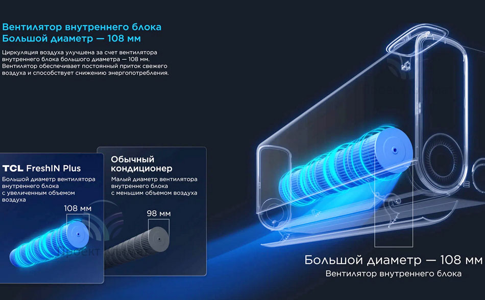 Уникальной особенностью TAC-FR09INV/R4 является встроенная система подачи свежего воздуха с улицы. Эта функция обеспечивает непрерывный приток кислорода, устраняет духоту и снижает концентрацию углекислого газа в помещении. Вам больше не придется открывать окна для проветривания, теряя драгоценное тепло или прохладу.