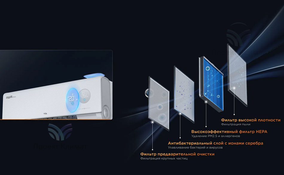 Система фильтрации кондиционера включает в себя несколько этапов очистки воздуха, удаляя пыль, аллергены, бактерии и другие загрязнения. Это особенно важно для людей, страдающих аллергией или астмой. Дышите чистым и свежим воздухом круглый год.